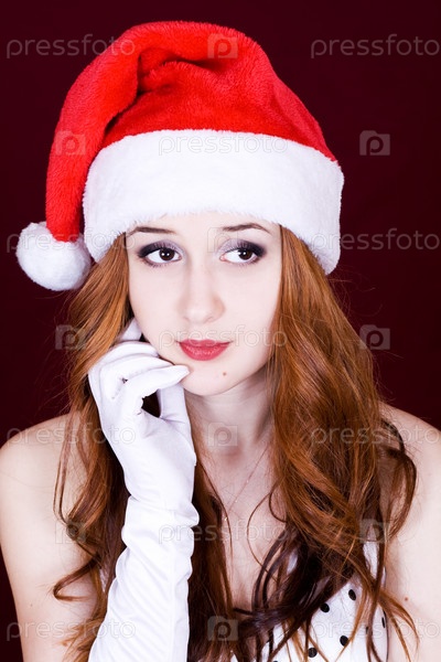 Женщина в колпаке Санта-Клауса