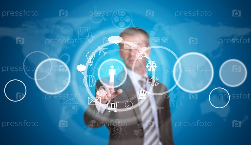 Деловой человек указывает на облако с иконками