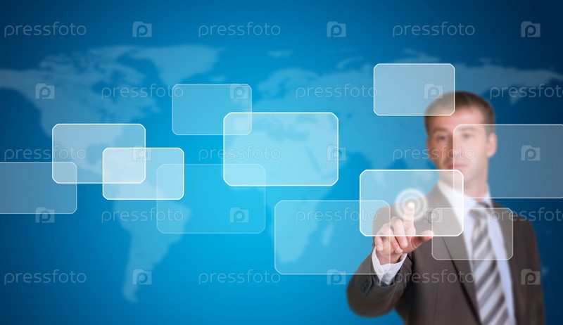 Бизнесмен указывает на пустую рамку
