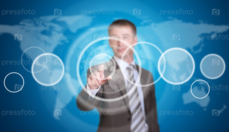 Бизнесмен указывает на круглую рамку