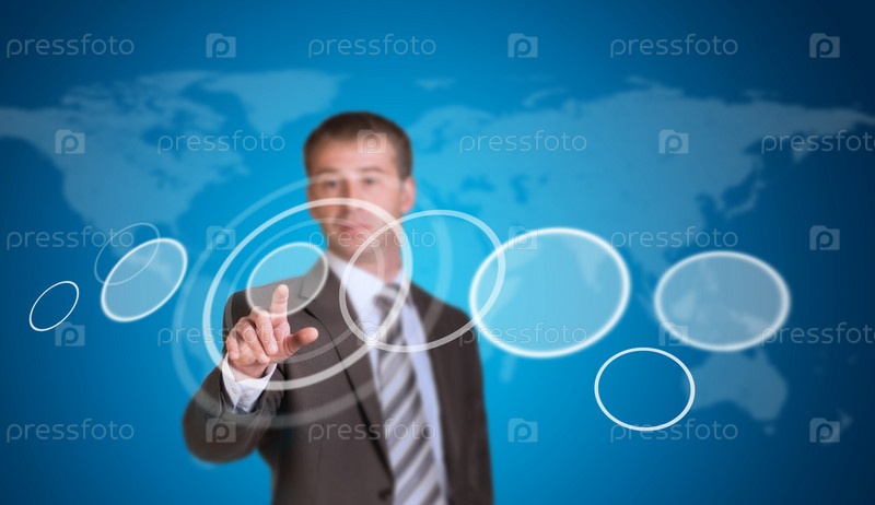 Бизнесмен указывает на круглую рамку