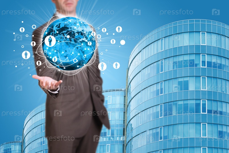 Деловой человек держит Землю