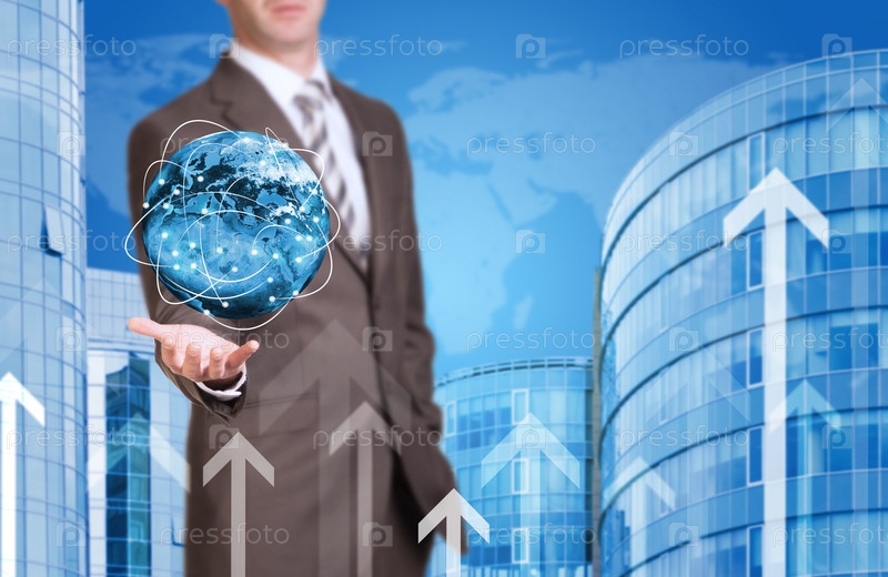 Деловой человек держит Землю