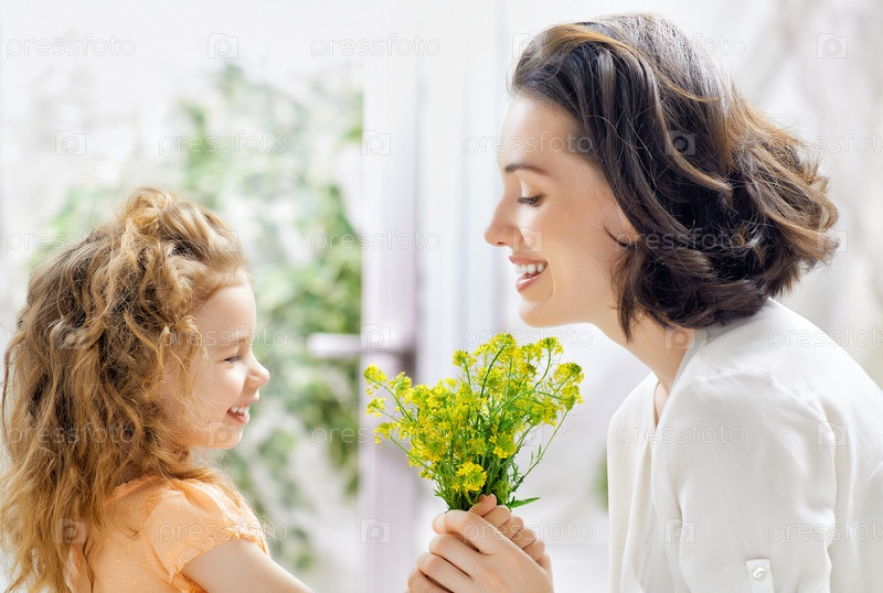 Женщина и девочка с цветами