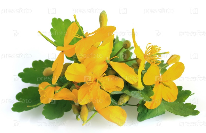 Чистотел, цветы. Изолирован на белом фоне