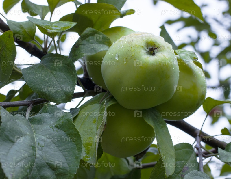 Зеленые яблоки на дереве