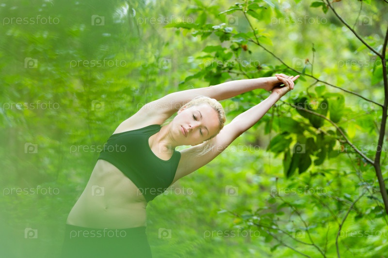Женщина занимается йогой