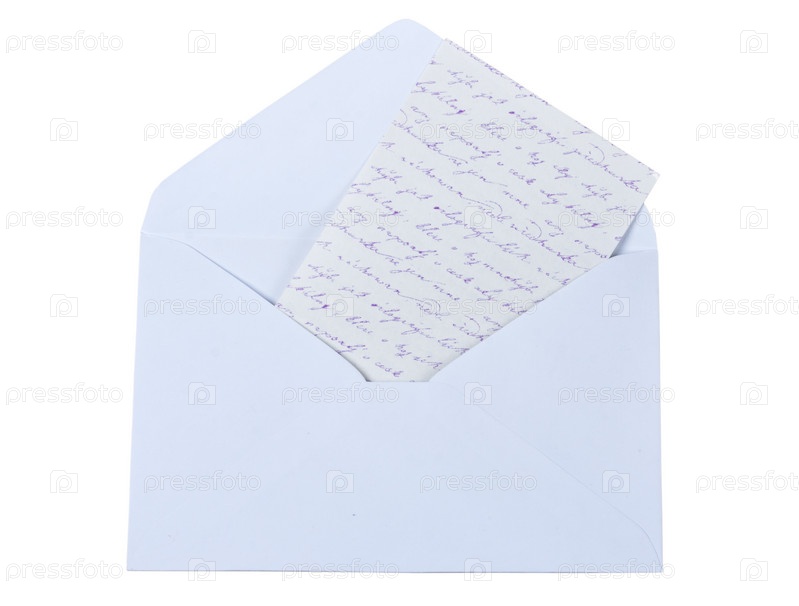 Открытый конверт с письмом на белом фоне