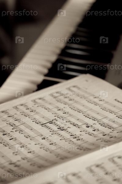 Ноты на фоне клавиш