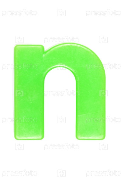 Зеленая английская буква N на белом фоне