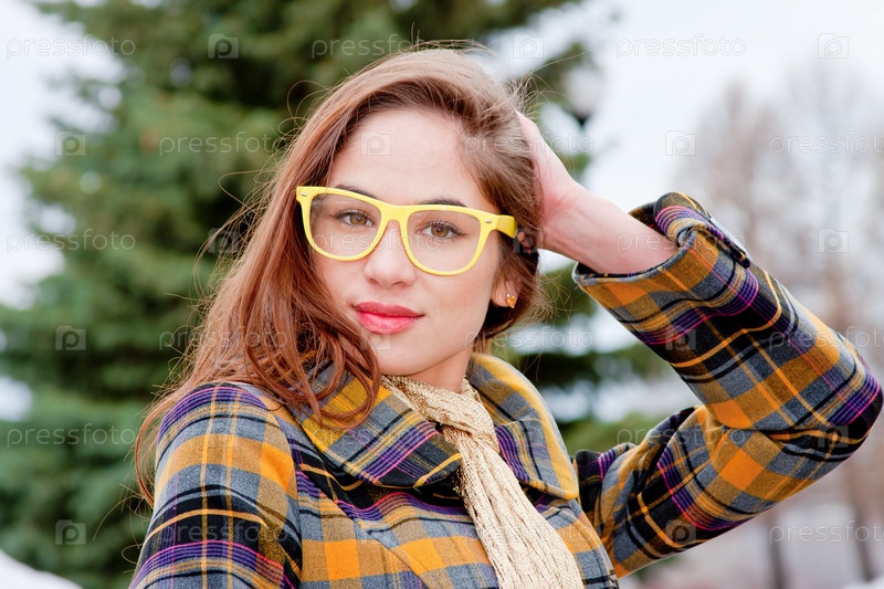 Молодая женщина в очках на фоне природы