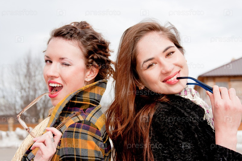 Две молодые женщины с очками на прогулке в парке