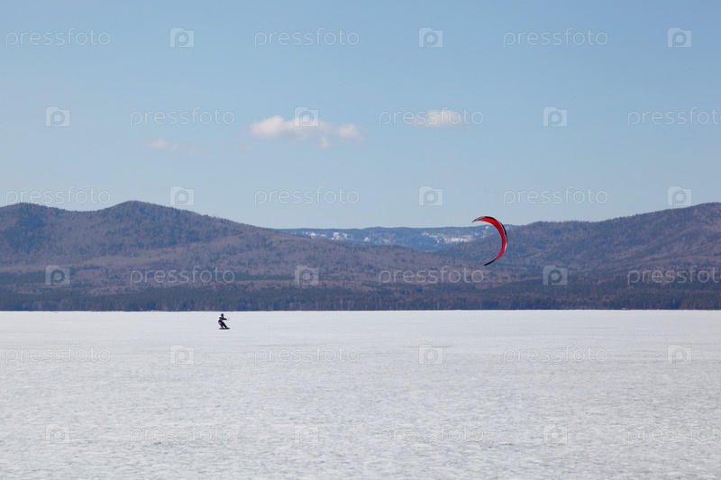 Соревнования по сноукайтингу на озере Тургояк