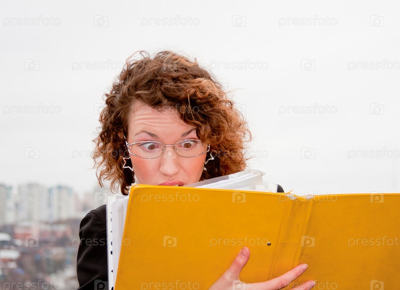 Женщина-предприниматель с документами в руках на фоне города
