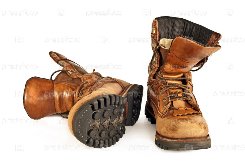 Коричневые ботинки на белом фоне