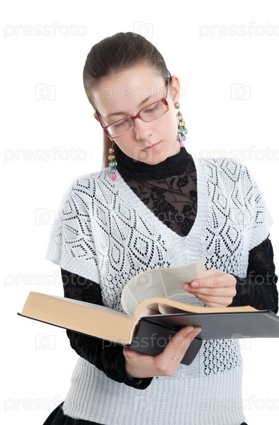 Девушка в очках читает книгу Девушка в очках читает книгу