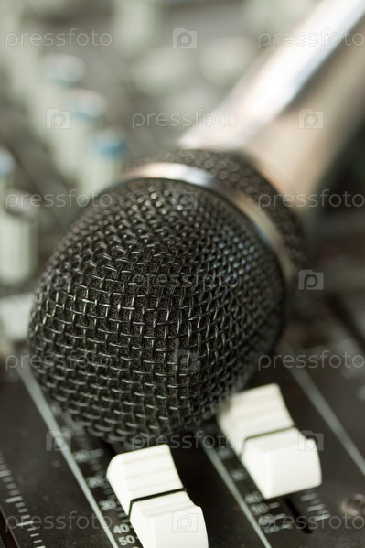 Микрофон на микшерном пульте, крупный план