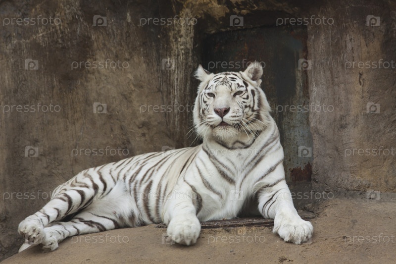 Лежащий белый тигр