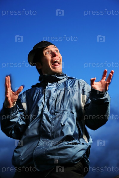Забавный парень на голубом фоне
