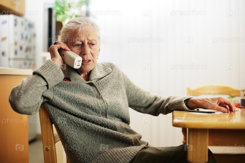 Пожилая женщина разговаривает по телефону