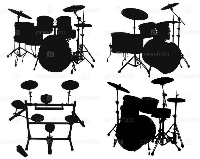 Коллаж из различных барабанных установок