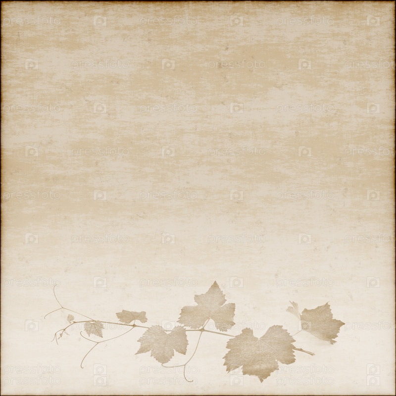 Бежевый фон в стиле гранж с рисунком виноградной лозы