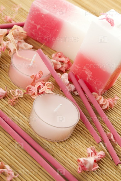 Набор для ароматерапии: палочки, свечи и сухие лепестки цветов