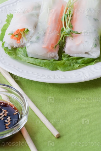Рисовые блинчики "спринг ролл" с ростками гороха и морковью