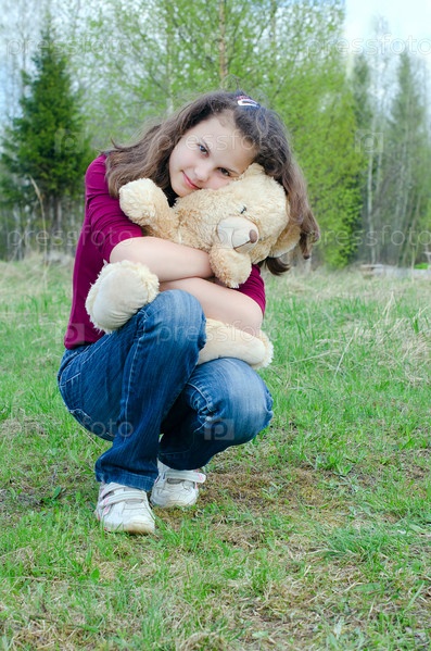 Девочка с плюшевым медведем в руках