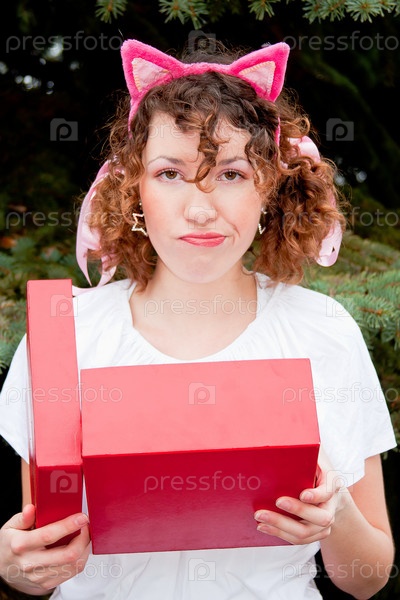Разочарованная девушка с открытым подарком