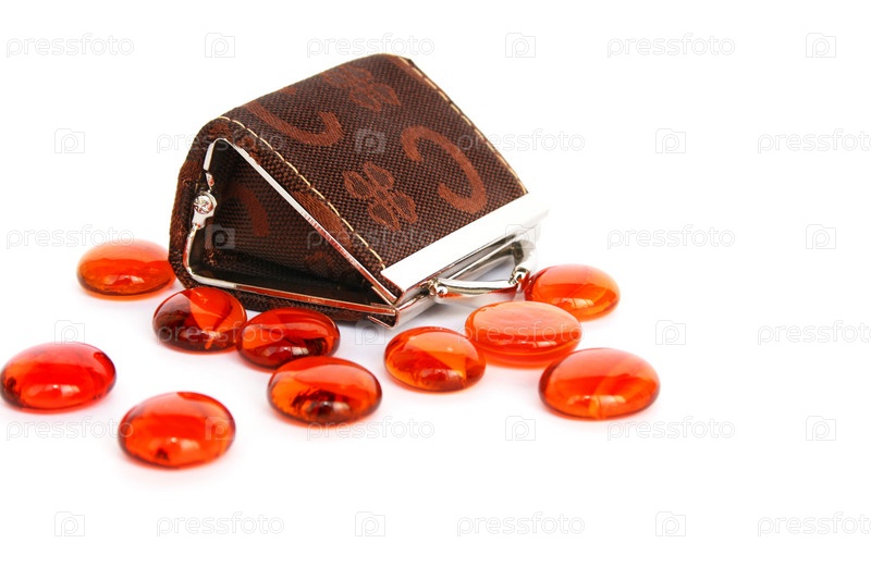 Бумажник и камни, изолированы на белом фоне