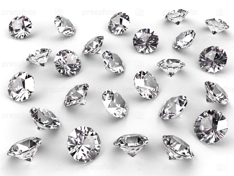 Несколько бриллиантов с реалистичными мягкими тенями на белом. высокое разрешение 3D-изображение