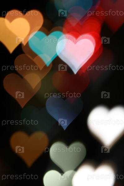 Абстрактный рисунок. Разноцветные сердца на черном фоне