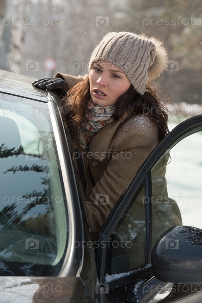 Женщина возле сломанного автомобиля