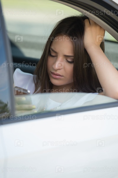 Женщина с телефоном в автомобиле