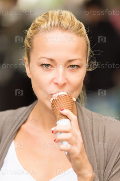 Женщина ест мороженое