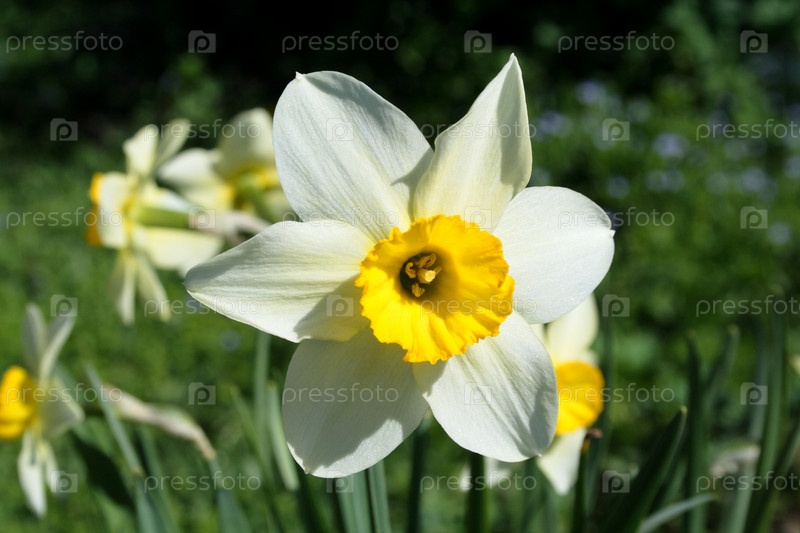 Белые нарциссы в весеннем саду