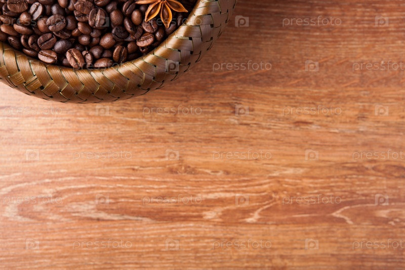 Жареный кофе в зернах в бамбуковой корзинке