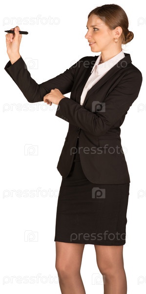 Красивая девушка в деловом костюме что-то пишет