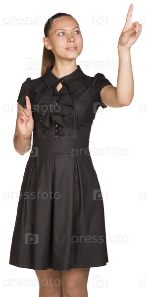 Женщина нажимает на виртуальную кнопку