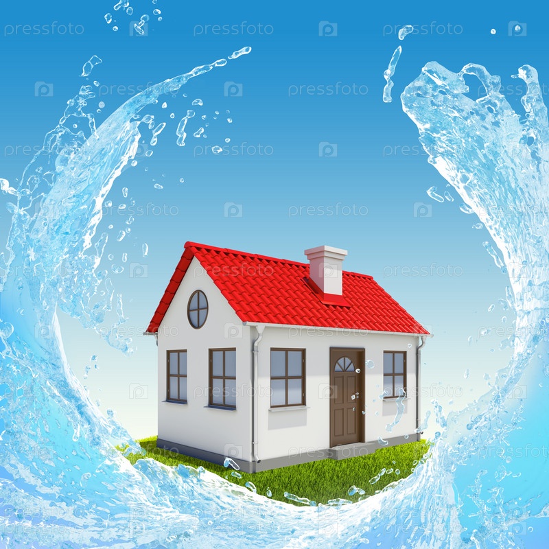 Дом, зеленый луг и всплеск воды