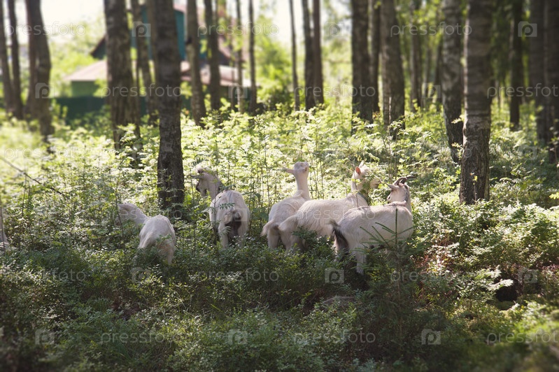 Козы пасутся в лесу