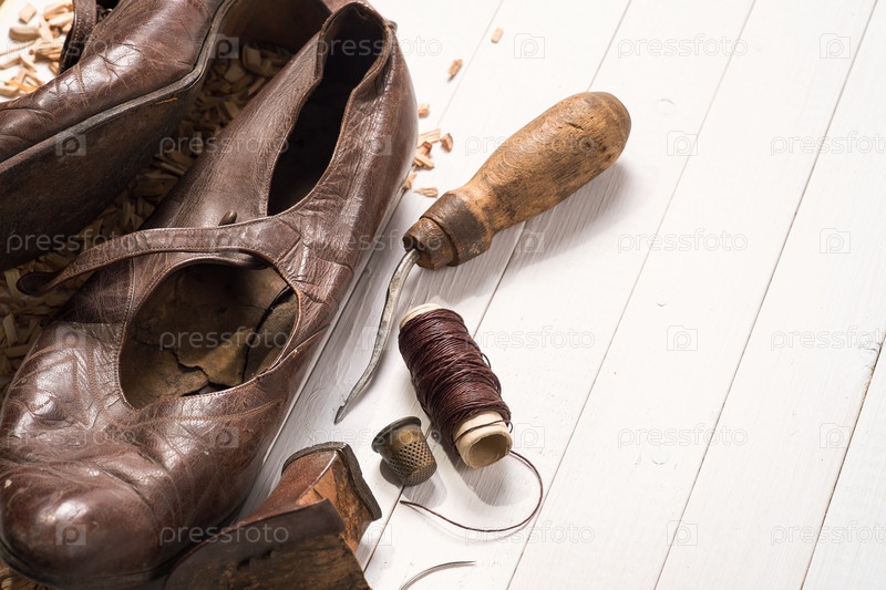Старая обувь и инструменты для ремонта
