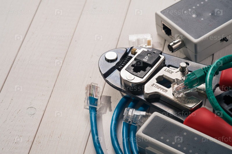 Сжаточный инструмент с разъемом RJ45 и прибор для проверки кабелей