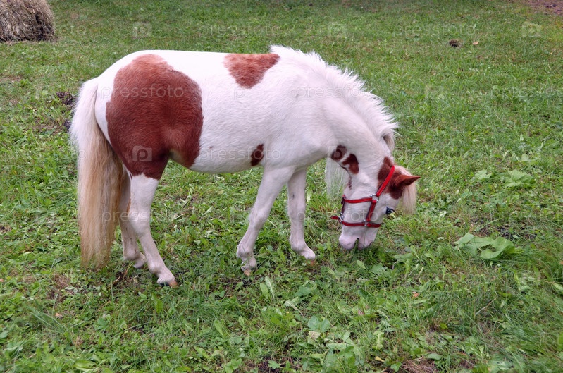 Пони пасется на лугу