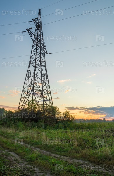 Опора ЛЭП в сельской местности на фоне вечернего неба