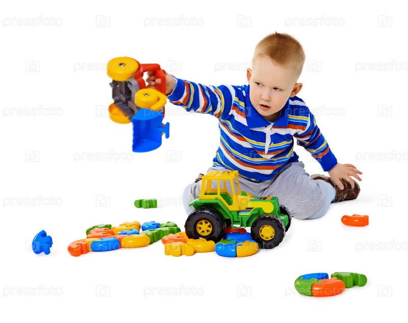 Мальчик играет с игрушечными машинами