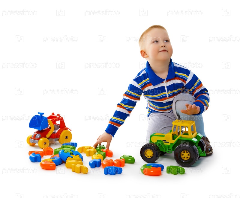 Мальчик играет с игрушечными машинами
