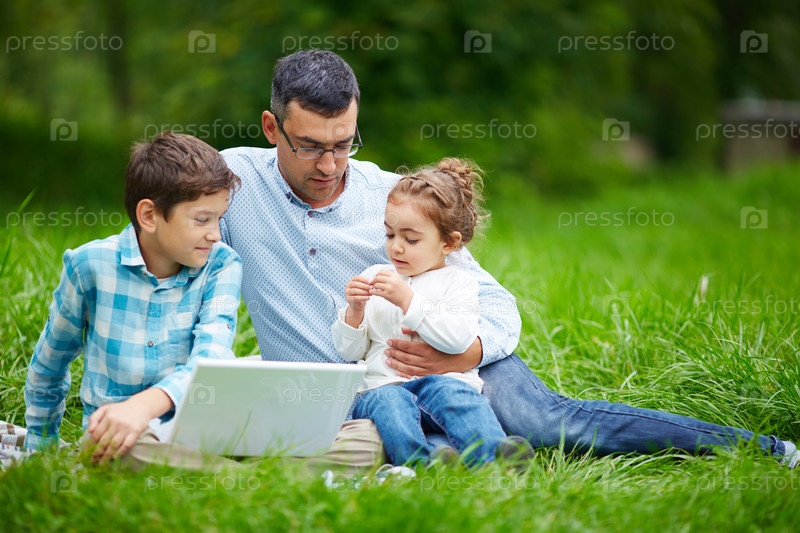 Семья отдыхает в парке