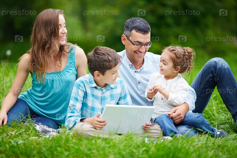 Семья отдыхает в парке